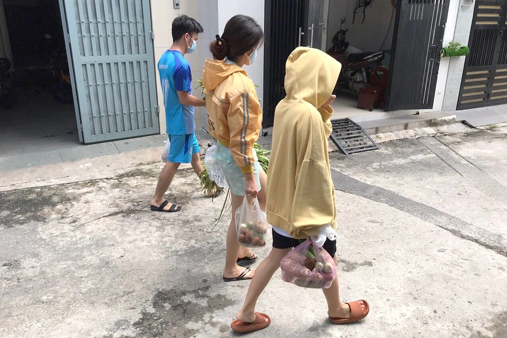 Sáng hôm đó, con hẻm vốn im lìm trong nhiều ngày thực hiện giãn cách theo Chỉ thị 16, kèm theo là lệnh phong tỏa toàn phường bỗng trở nên rộn ràng hẳn lên.