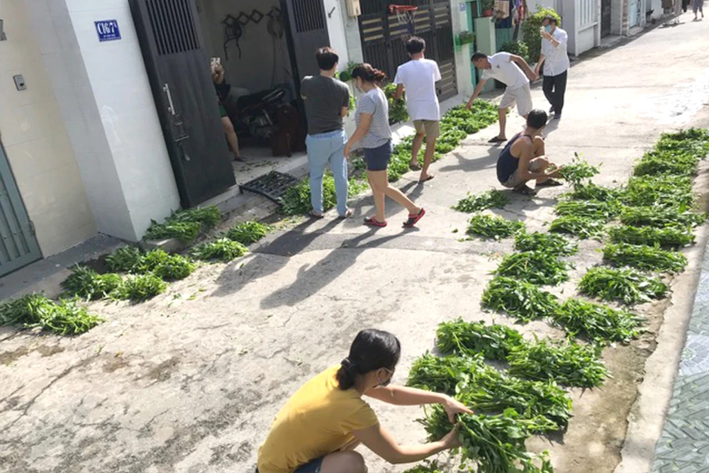 Buổi sáng ngày thứ sáu kể từ khi nơi tôi ở áp dụng biện pháp cách ly y tế, phong tỏa toàn phường, đầu hẻm vang lên tiếng gọi: “Ra lấy rau củ đi mọi người ơi!”.