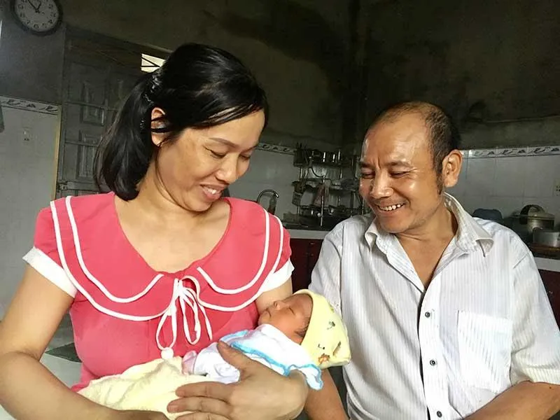 Ngôi nhà nhỏ ven con đường dẫn vào xã Bàu Trâm, TP Long Khánh, Đồng Nai oe oe tiếng khóc trẻ sơ sinh, cười đùa rộn ràng. Có khách lạ ghé thăm, vợ chồng chị Phạm Thị Hằng (39 tuổi) và anh Đỗ Văn Công (46 tuổi) đon đả pha nước mời khách. Chị Hằng cho biết hiện tại con trai tăng cân, bú khỏe, đêm ngủ ngoan. Còn bản thân chị khỏe, không còn đau ở vết mổ.