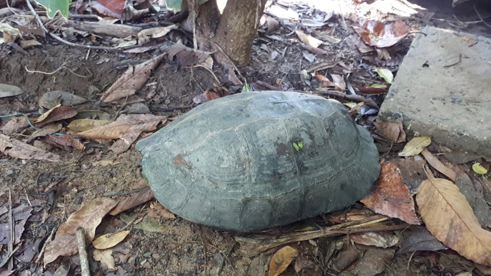 Cá thể rùa đất lớn được bàn giao cho lực lượng kiểm lâm. Ảnh: HT