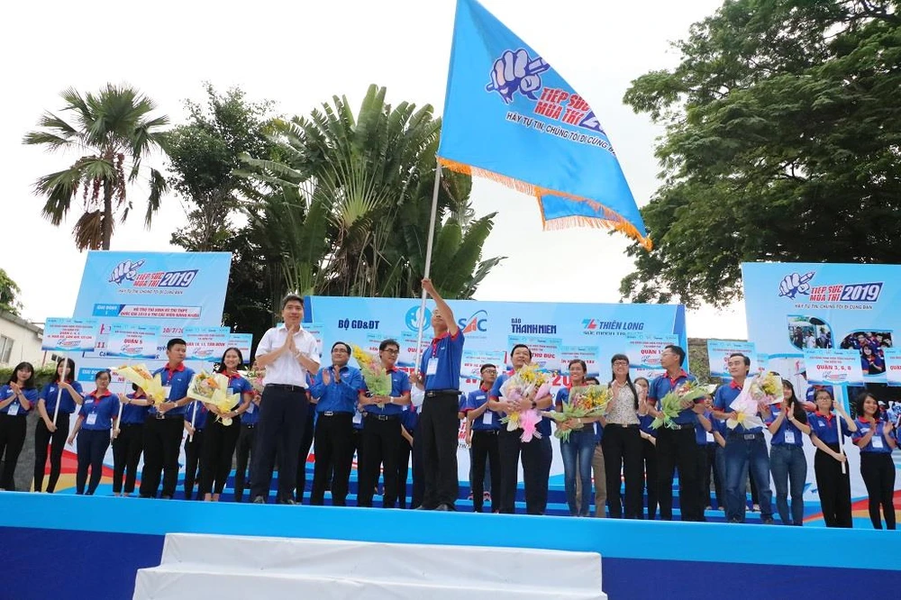 Nghi thức trao cờ trong Lễ ra quân “Tiếp sức mùa thi 2019”: Ảnh: HỒNG LONG