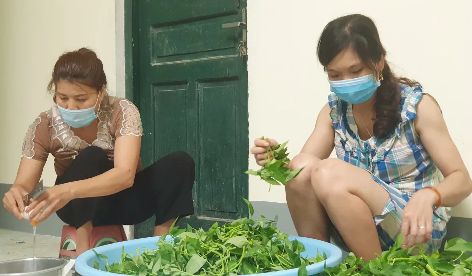 Nào là rau, là thịt được các thầy cô làm cẩn thận để có những bữa ăn vừa ngon miệng và đảm bảo an toàn thực phẩm cho các em trong suốt kỳ thi.