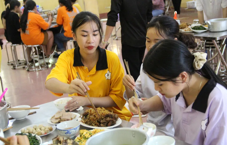 Sau mỗi bài thi kết thúc, trong bữa ăn tập thể là những nụ cười và cả những lời động viên cùng nhau vượt qua và làm tốt bài thi cuối cùng.