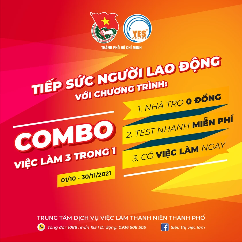 Chương trình "Tiếp sức người lao động" hỗ trợ nhà trọ, xét nghiệm COVID-19 và giới thiệu việc làm do Trung tâm Dịch vụ việc làm Thanh niên TP.HCM (Yescenter) thực hiện, diễn ra từ ngày 1-10 đến 30-11-2021. Nhiều người lao động từ các tỉnh thành đã gọi điện để được tư vấn, tìm kiếm việc làm sau dịch.