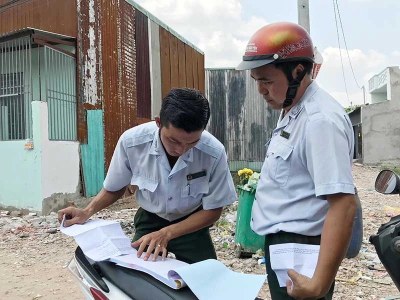 Thanh tra Sở Xây dựng TP.HCM lập hồ sơ xử lý các công trình xây dựng không phép tại xã Vĩnh Lộc A, huyện Bình Chánh tháng 3-2019. Ảnh: VIỆT HOA