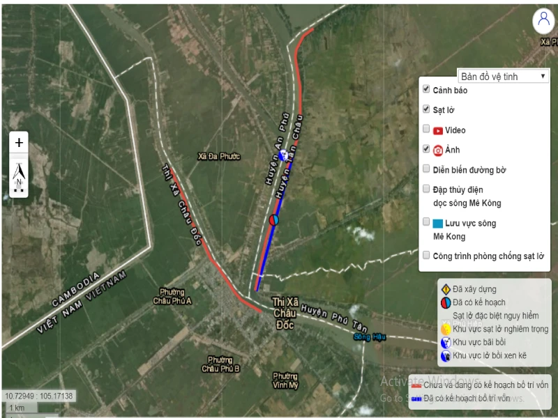 Bản đồ điểm sạt lở bờ sông Hậu, xã Châu Phong, thị xã Tân Châu. (Ảnh chụp từ cổng thông tin điện tử Tổng cục Phòng, chống thiên tai)