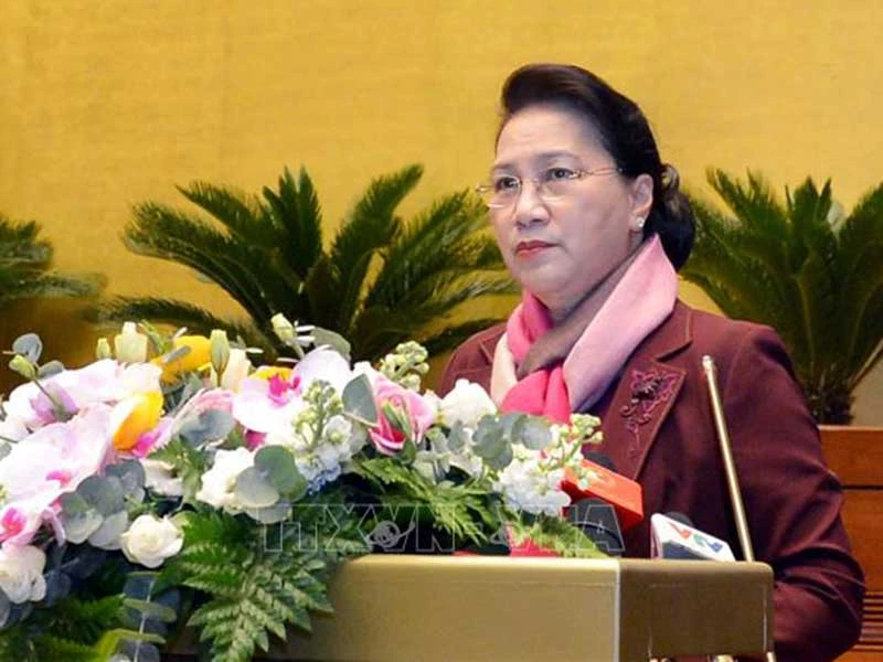 Chủ tịch Quốc hội Nguyễn Thị Kim Ngân phát biểu tại hội nghị. Ảnh: TTXVN