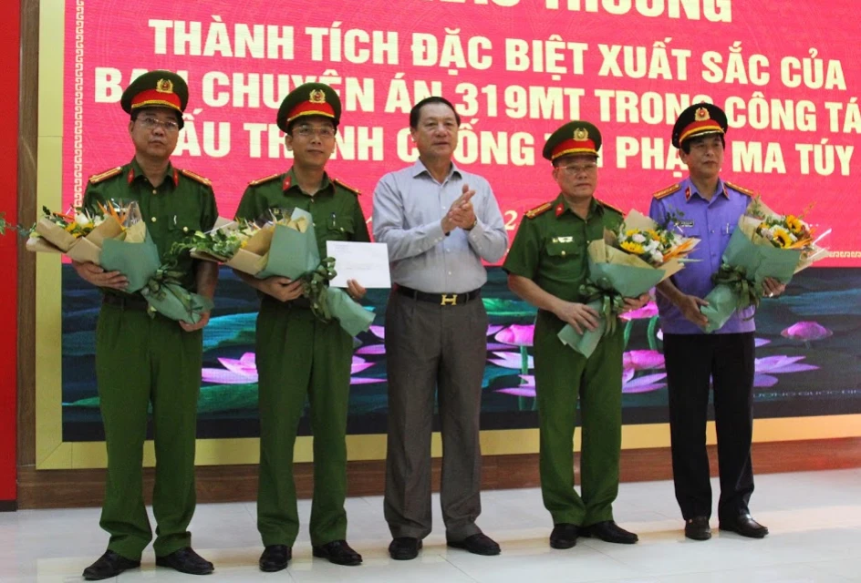 Ngày 25-4, Công an tỉnh Nghệ An tổ chức lễ trao thưởng thành tích đặc biệt xuất sắc cho Ban chuyên án 319MT trong công tác đấu tranh phòng chống tội phạm ma túy, phát hiện thu giữ 700 kg ma túy đá.