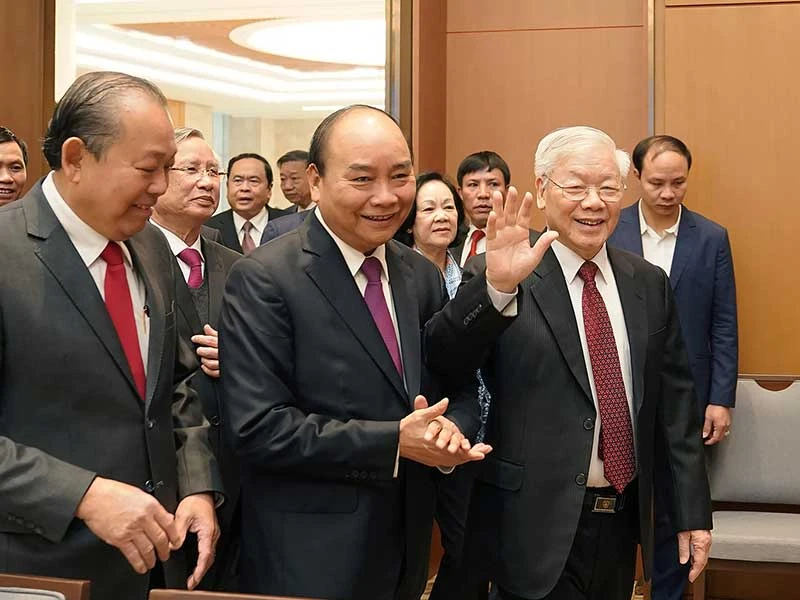 Tổng Bí thư, Chủ tịch nước Nguyễn Phú Trọng và các đại điểu đến dự hội nghị. Ảnh: plo.vn