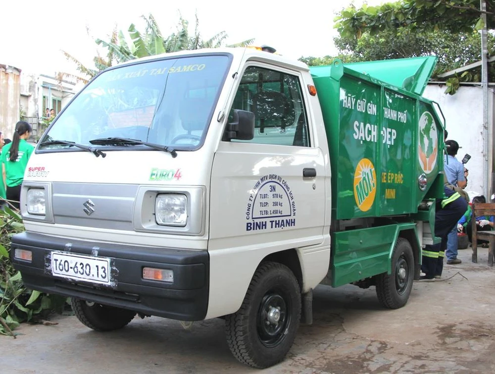 Đến năm 2020, lực lượng thu gom rác dân lập phải chuyển đổi phương tiện thu gom, vận chuyển chất thải rắn sinh hoạt theo quy chuẩn của TP.HCM. Trong ảnh là một mẫu xe thu gom rác đang được trưng bày và lấy ý kiến cộng đồng (Ảnh: NM)