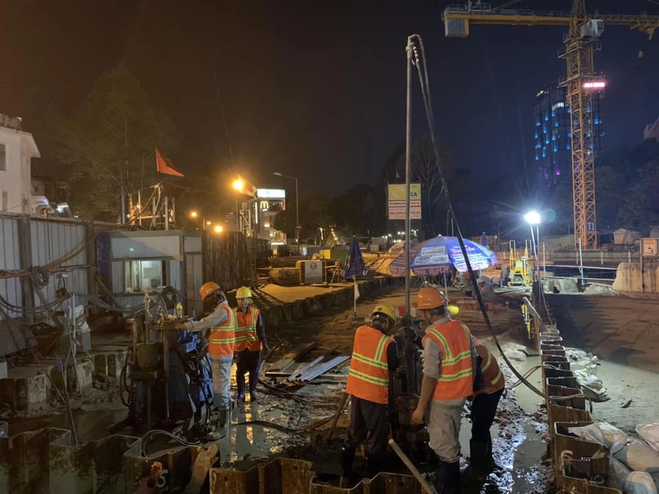 Đội ngũ kỹ sư, công nhân trên công trường gói thầu CP1a đang thi công không ngừng nghỉ. Ảnh: MAUR cung cấp