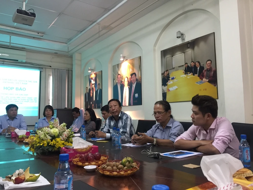Nhạc sĩ Thế Hiển (áo ca rô) cho rằng, nhờ VCPMC nhạc sĩ mới có nguồn tiền để sống. Ảnh: QUỲNH TRANG