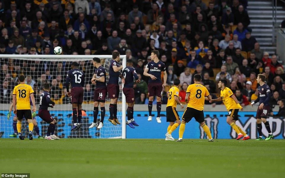 Wolverhampton mở tỷ số bằng pha sút phạt đẹp mắt của Neves.