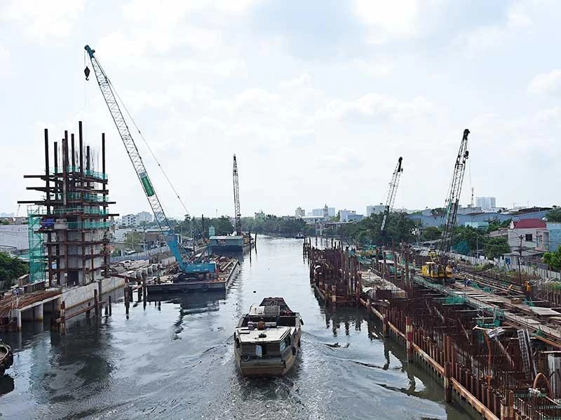 Cống kiểm soát triều Phú Định thuộc dự án chống ngập 10.000 tỉ đồng của TP.HCM được thực hiện theo hình thức BT. Ảnh: KIÊN CƯỜNG