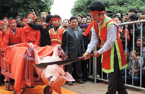 Lễ hội chém lợn tại làng Ném Thượng năm 2014. Ảnh: VT