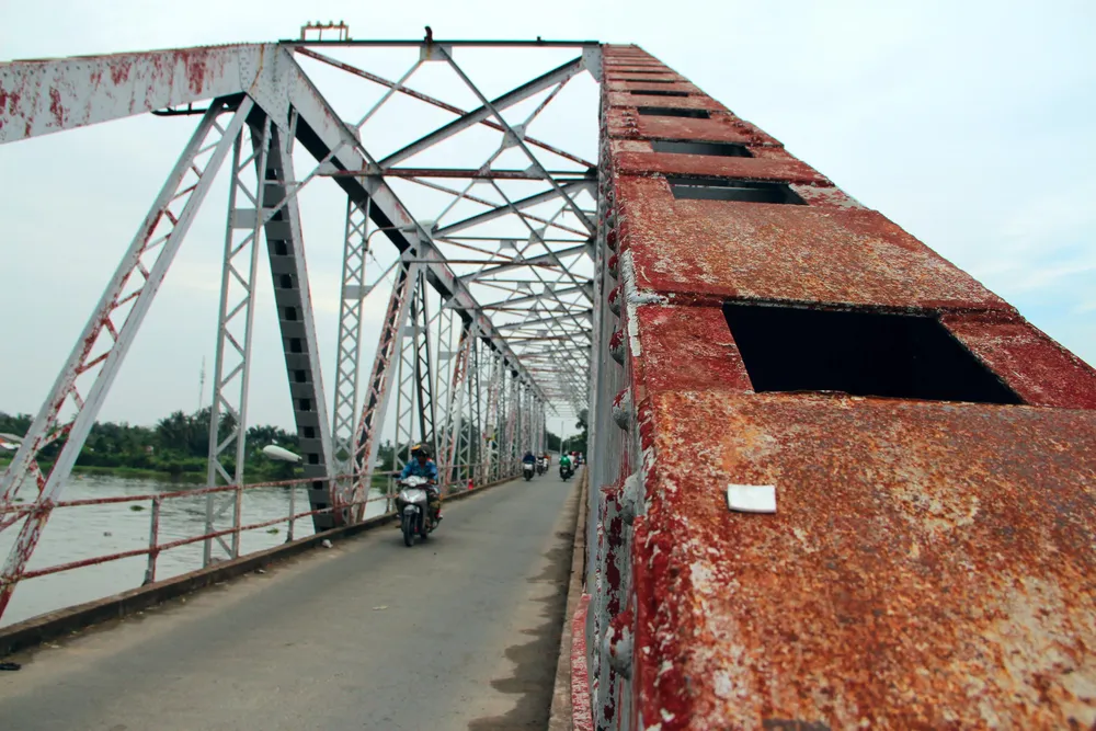 Cầu Phú Long cũ được xây dựng toàn bộ bằng dàn thép Eiffel.