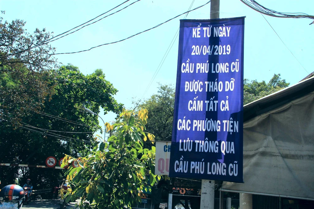 Ngày 2-4, đơn vị này tiếp tục treo bảng thông báo việc tháo dỡ cầu Phú Long cũ nối quận 12 (TP.HCM) và thị xã Thuận An (Bình Dương) sẽ được tiến hành từ ngày 20-4, các phương tiện sẽ bị cấm lưu thông qua đây.