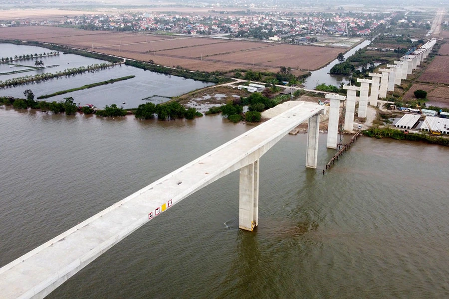 Tại huyện Thái Thụy (Thái Bình) đã đắp cát nền đường được hơn 7,7 km, trong đó có 6 km đã thi công cấp phối đá dăm. Cầu Thái Bình cũng dự kiến bắt tay xây dựng trong quý I-2022. Tại huyện Tiên Lãng, bắt đầu thi công đào khuôn đường. Tổng cộng mới đạt 32% giá trị hợp đồng BOT.