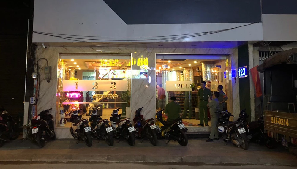 Rạng sáng một ngày trước, Công an quận 1 ập vào khách sạn trên đường Lê Thị Riêng (phường Bến Thành, quận 1) bắt quả tang hai cô gái đang bán dâm cho khách nam. Họ khai là tiếp viên nhà hàng 123 trên đường Lê Thị Riêng đi bán dâm theo sự điều động của quản lý Huỳnh.