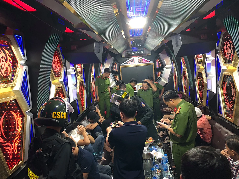 Tại nhiều phòng VIP phục vụ karaoke chui, cảnh sát phát hiện dàn tiếp viên ăn mặc “thiếu vải” đang tiếp đoàn khách nước ngoài. Nhiều người có biểu hiện phê ma túy.