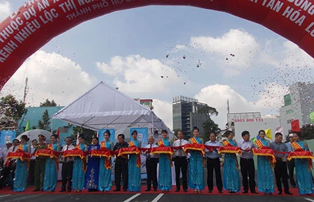 Lãnh đạo TP cắt băng thông xe kỹ thuật cầu Bông và cầu Hậu Giang. Ảnh: Lưu Đức