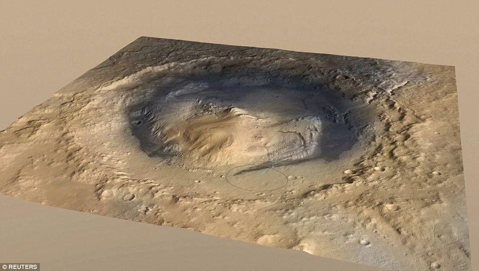 Miệng núi lửa Gale Crater - nơi được dự đoán là từng có nước. (ảnh: Reuters)