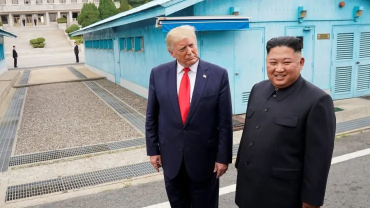 Tổng thống Mỹ Donald Trump (trái) gặp nhà lãnh đạo Triều Tiên Kim Jong-un tại khu phi quân sự liên Triều ở Bàn Môn Điếm, Hàn Quốc hồi tháng 6-2019. Ảnh: REUTERS