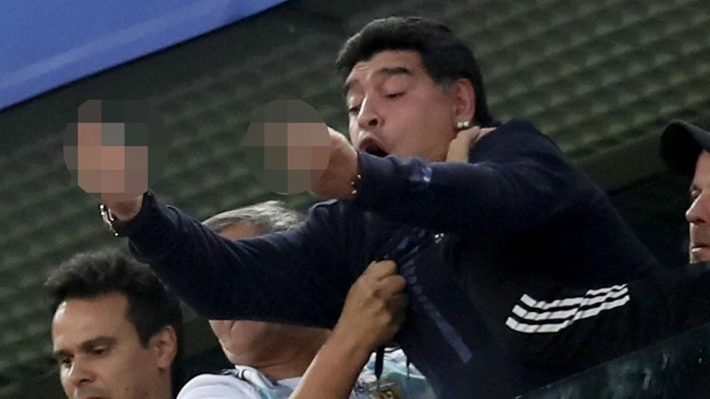 Ở trận đấu cuối cùng, Maradona ngang nhiên chĩa “ngón tay thối” cùng những lời tục tĩu ném vào đám đông sau khi Rojo ghi bàn đưa Argentina vượt qua vòng bảng. Theo sau đó là màn nhập viện cấp cứu rồi nhận mình say rượu.