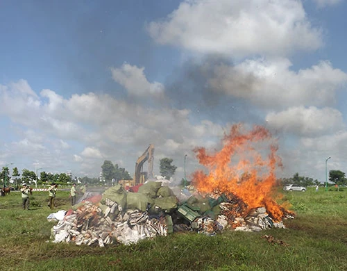 Theo ông Cao Văn Hồng, Trưởng phòng Nghiệp vụ Tổng hợp Chi cục QLTT Long An, đây là đợt tiêu hủy thứ 7 tính từ đầu năm đến nay.