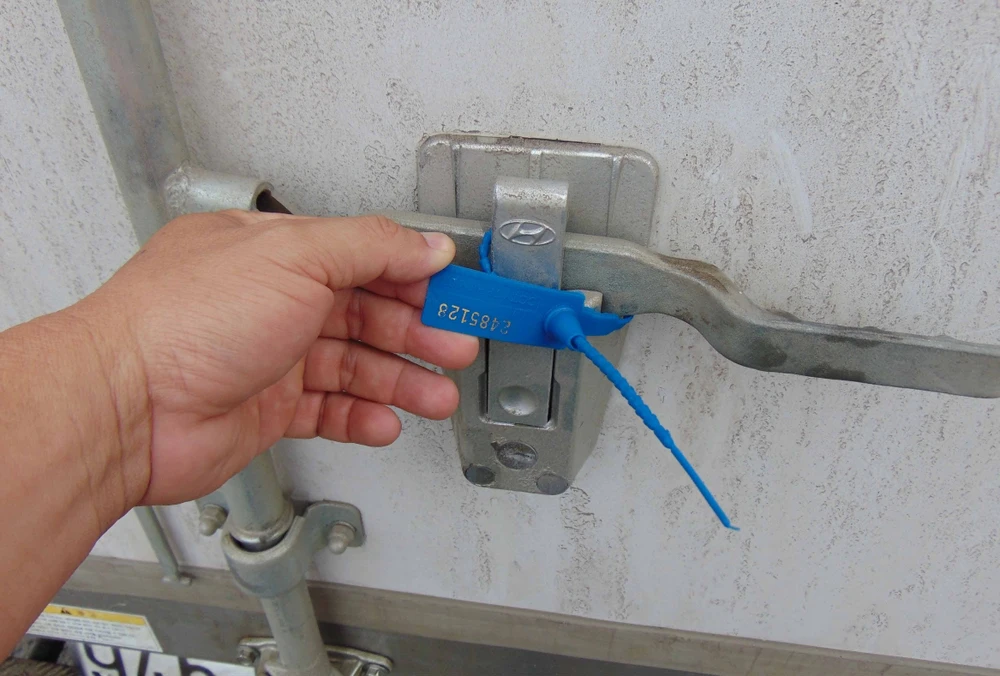 Xe chở heo tiêu hủy được niêm phong cẩn thận. Ảnh: TRẦN NGỌC