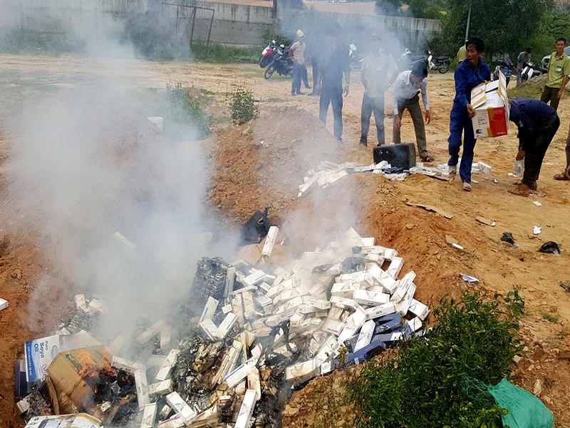 Tiêu hủy số thuốc lá nhập lậu được phát hiện từ năm 2015 đến nay. Ảnh: NG.TUẤN