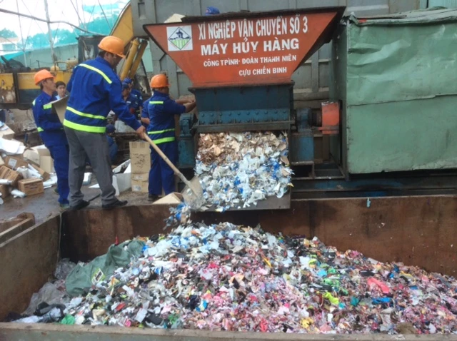 Hàng ngàn loại mỹ phẩm được đem đi tiêu hủy.