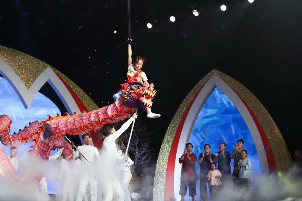 Tối 14-6, chương trình “Tiếu lâm tứ trụ nhí” với chủ đề Phim phát trên Đài truyền hình Vĩnh Long đã khiến người xem hào hứng với tiết mục Đại chiến rồng mưa của đội huấn luyện viên Gia Bảo. Tiết mục được dàn dựng hấp dẫn với màn bay lượn như phim độc đáo của diễn viên nhí đóng vai chính Na Tra, cùng với đó là màn múa rồng hoành tráng.