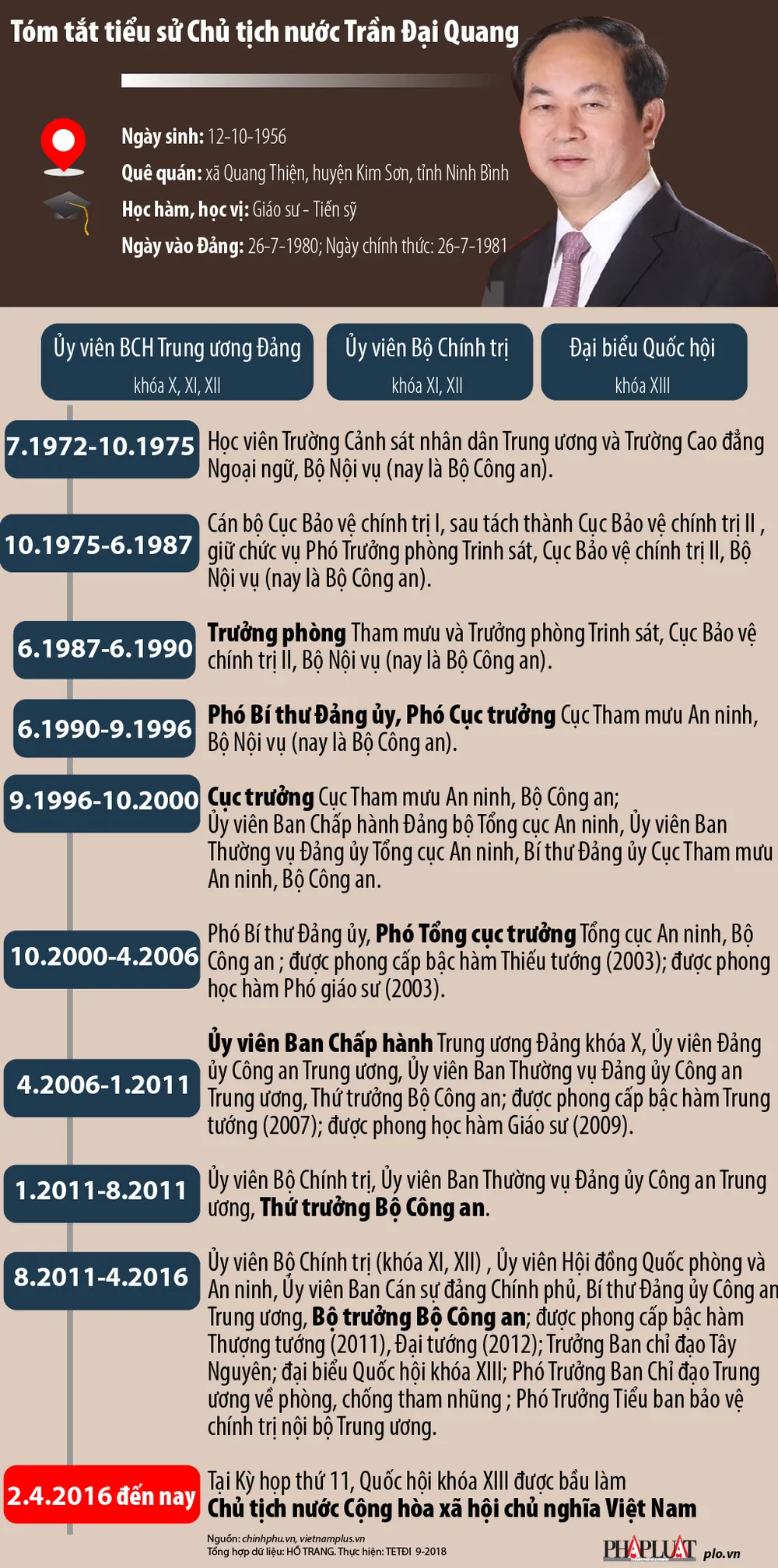 (PLO)- Theo TTXVN, Chủ tịch nước Trần Đại Quang đã mất lúc 10 giờ 5 phút ngày 21-9-2018 tại BV Trung ương Quân đội 108.