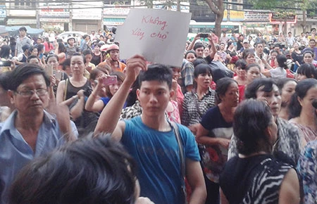 Chiều 23-9, hàng trăm tiểu thương đã tụ tập trước cổng chợ Tân Bình phía đường Lý Thường Kiệt (TP.HCM) bày tỏ thái độ không đồng tình với dự án xây mới chợ này. Tới hơn 18 giờ, các tiểu thương vẫn chưa chịu giải tán.