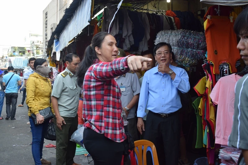Đoàn khảo sát tại chợ Tân Bình. Ảnh: NGUYỄN TRÀ