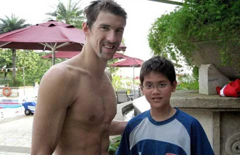 Joseph Schooling năm 16 tuổi tập huấn tại Mỹ đã rụt rè xin được chụp ảnh cùng thần tượng Michael Phelps.