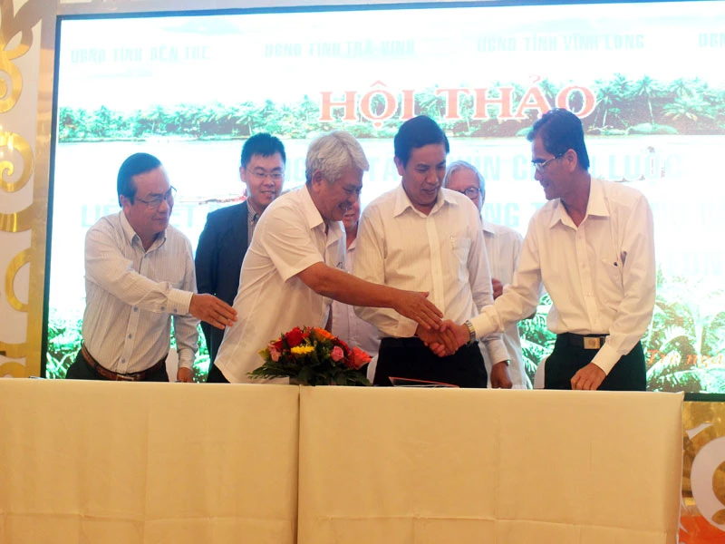 Lãnh đạo các tỉnh Bến Tre, Tiền Giang, Trà Vinh và Vĩnh Long bắt tay cùng liên kết thực hiện đề án tầm nhìn chiến lược phát triển tiểu vùng bền vững.