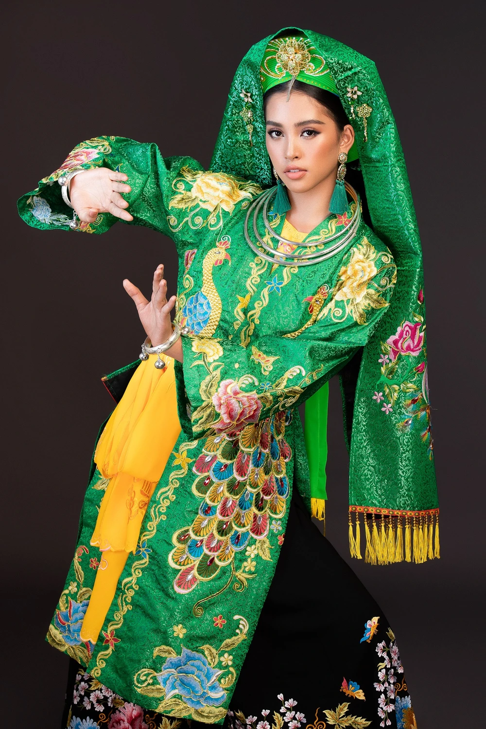 Trang phục của Tiểu Vy cho phần thi này cũng được đánh giá cao. Hoa hậu Tiểu Vy và êkíp đã lặn lội đến các khu phố cổ, các nghệ nhân chuyên may thêu trang phục cho các nghi lễ hầu văn để nhờ tư vấn trang phục. Sắc xanh của miền rừng núi được thể hiện trên nền gấm có hoa văn tinh xảo sang trọng.