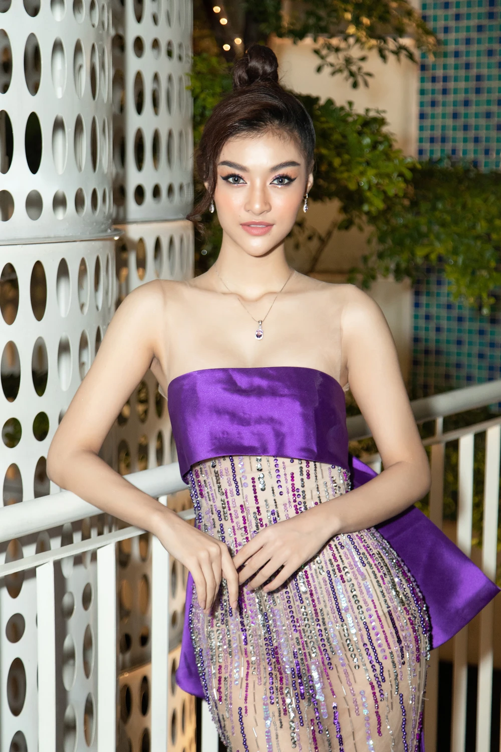 Sự kiện còn có Người đẹp Nguyễn Thúc Thùy Tiên, Hoa khôi Huỳnh Thúy Vi. Cùng diện trang phục có tông hồng nhiều hơn, trong khi Nguyễn Thúc Thùy Tiên kín bưng với trang phục nhấn eo thì Huỳnh Thúy Vi lại có những họa tiết đầy độc đáo ở phần thân trên của trang phục.