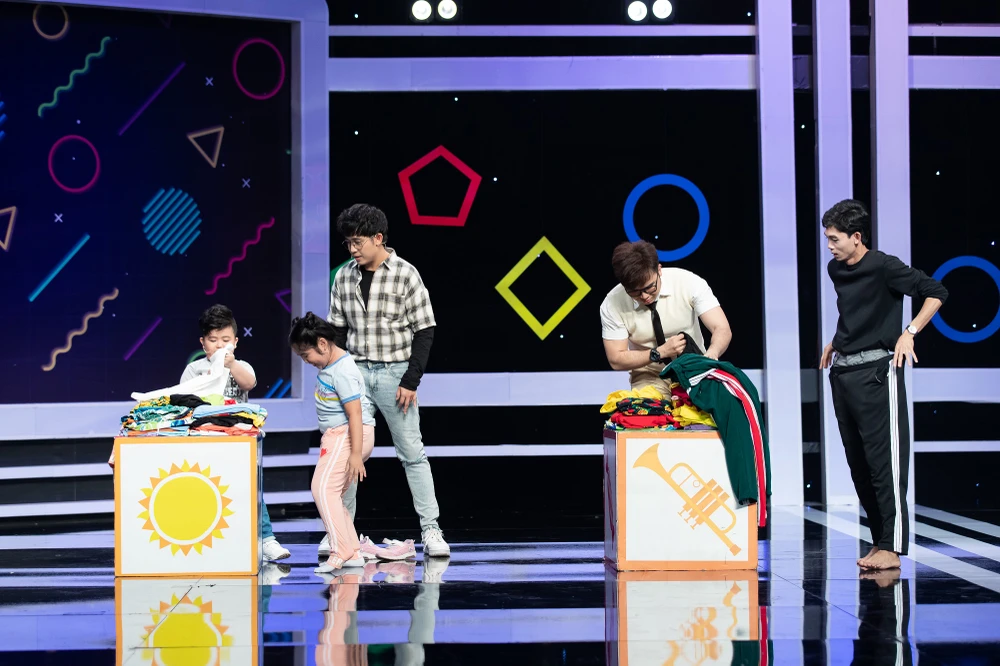 Chưa vào cuộc, diễn viên Hồng Thanh định thua non trước cặp tài năng nhí Tin Tin & Hồng Ân. Ảnh: Chương trình