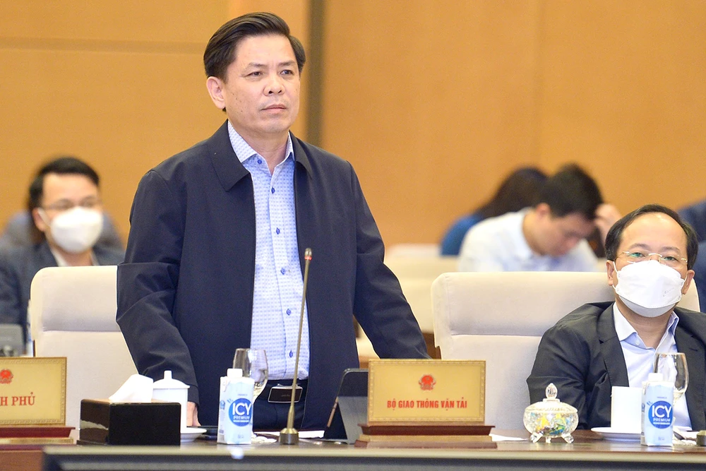 Bộ trưởng Bộ GTVT Nguyễn Văn Thể giải trình về tiến độ thực hiện dự án đường Hồ Chí Minh. Ảnh: QH
