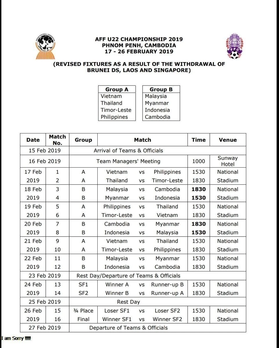 Lịch thi đấu U-22 Đông Nam Á
