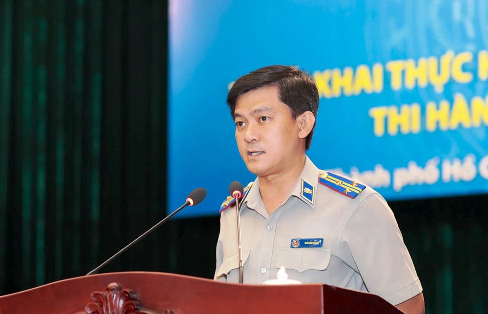 Ông Trần Đình Hoàng, Trưởng Phòng nghiệp vụ 2, Cục THADS TP.HCM, trình bày. Ảnh: QUANG HÒA