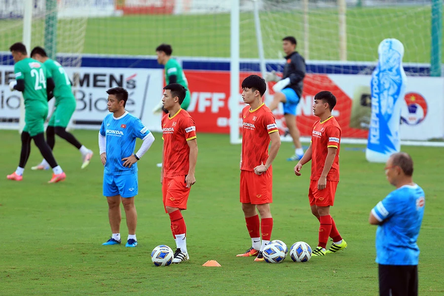 Thầy Park đang muốn các học trò vượt qua sức ép để có điểm số đầu tiên. Ảnh: VFF