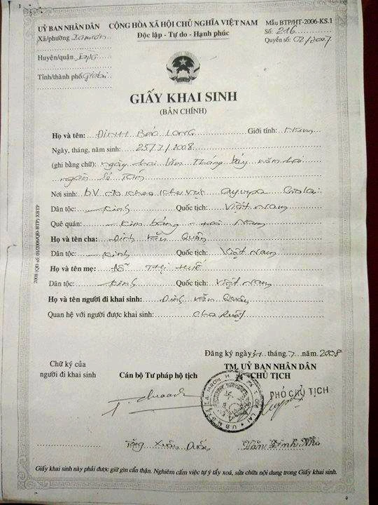 Chị Hương mang theo cả giấy khai sinh của Long.