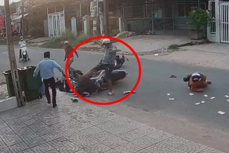 Ngay sau khi xảy ra vụ việc, Thành không giúp đỡ người bị nạn mà còn lao thẳng tới chỗ một học sinh nữ đi xe đạp điện chửi bới và dùng chân đạp thẳng vào mặt nữ sinh này.