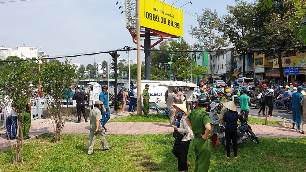 Đến đầu giờ chiều 5-11, thi thể người đàn ông nhảy xuống kênh Nhiêu Lộc - Thị Nghè vào ngày hôm trước đã được tìm thấy. Ảnh: NT