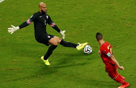 Tim Howard đã có 15 pha cứu thua bằng đủ mọi bộ phận cơ thể gồm tay, chân, ngực, gối. Anh xứng đáng là người hùng của đội Mỹ trong trận gặp Bỉ mà đội nhà bị ép sân dữ dội. Với 39 cú sút trong 120 phút của đội Bỉ, Tim Howard đã có 15 pha cứu thua (phá kỷ lục 13 lần cứu thua của Ramon Quiroga của Peru trong trận gặp Hà Lan tại World Cup 1978).