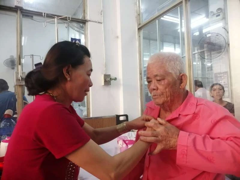 Cụ ông bơ vơ không người thân khi xung quanh một người bệnh có ba bốn người thân chăm sóc. Ảnh: HL